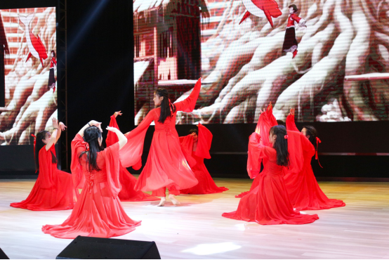 “有人爱它动人的故事情节,有人爱它听不腻的主题曲”,中文之星艺术团舞蹈队带来了舞蹈《大鱼》的表演。红衣飘飘跟着屏幕上的大鱼一起,就像是潜入了深海,只看海天一色,听风起风落。