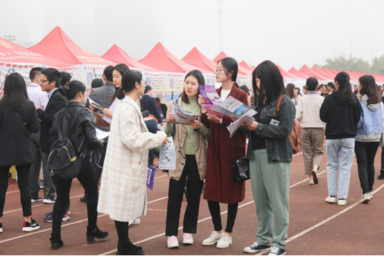 招聘会现场熙熙攘攘,人声鼎沸,气氛十分热烈。公司毕业生穿梭其中,仔细阅读招聘信息,寻找自己心仪的单位,他们怀揣着对未来的希望,向招聘单位投递自己的简历,与单位负责人进行面对面的交流。