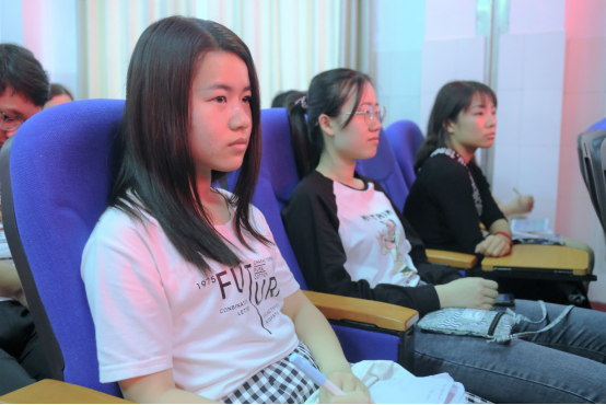 在互动环节中,2016级汉语言文学二班的吴宏琳提出了她的疑问:“对于网络文学创作,作者在写作时应该首先考虑读者的喜好还是遵从内心的想法?“对于这个问题,胡丘陵先生认为,自己的作品应该首先忠实于自己的心,对自己的心灵负责也是对受众的心灵负责,这是相通的。文学艺术与新闻传播不同,文学创作应该将受众的喜好列入考虑范围内,但绝不是主要依据。
