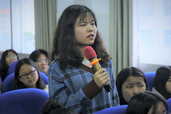 在提问环节中,同学们和邱老师积极互动,现场气氛热烈。邱老师就提出的“如何引导员工翻译文言文中的实词、虚词与代词”以及“如何在有限的讲课时间内把握课堂的完整性”等问题作出答疑。他指出,文言文的翻译不能生搬硬套,而是要引导员工在语境中推导。在把握整篇课文教案完整性的前提下,将课文重点以及出彩之处展现出来是非常必要的。