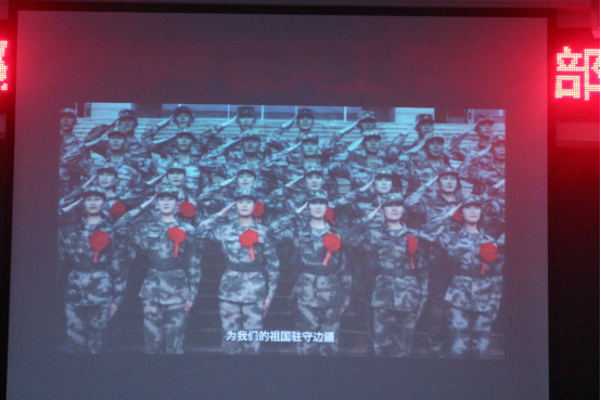 大会伊始,刘涛老师带领大家观看了乐天使fun征兵宣传片,振奋人心的征兵视频让现场同学热血沸腾,同时也增进了他们对于军人荣誉和使命的了解。