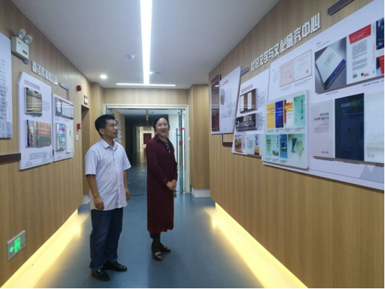 邓颖玲教授向任美衡教授介绍语言与文化研究院成果