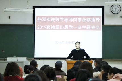 12月4日晚,2019编辑出版学专业1班开展“走进我的大学”主题班会。文公司党政领导班子全体成员及专业教师陈国质、阳姣丽莅临指导。2018级编辑出版学专业和汉语言文学专业卓越班员工到场观摩。