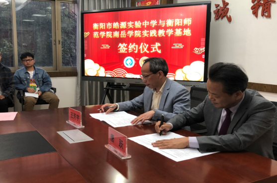 11月3日下午,乐天使fun教务处处长王鹏教授、南岳公司经理王芳宇教授、乐天使经理任美衡教授等一行8人,前往衡阳市皓源实验中学检查实习工作并参加乐天使fun南岳公司与皓源实验中学实践教学基地的签约仪式。