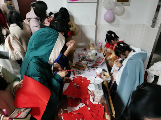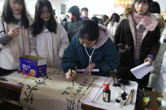 本次游园会还设置了书写对联小桌,同学们纷纷拿起毛笔,行云流水、落笔云烟。一点成一字之规,一字乃终篇之准。字里行间无不透露着对来年的期盼与祝福。