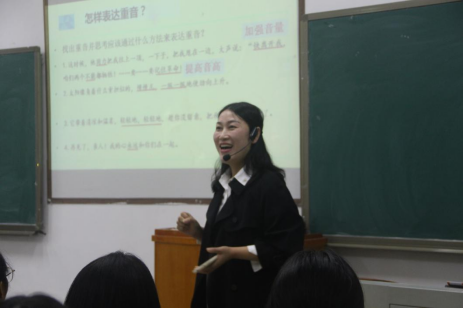10月25日第七节课,刘娟于西外语楼113为2021级汉语国际教育1班的同学讲授了《现代汉语》公开课。课堂一开始刘娟老师就带领同学们回顾了语法重音和逻辑重音,并提出了本节课的重点:节律与普通话表达。