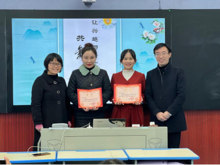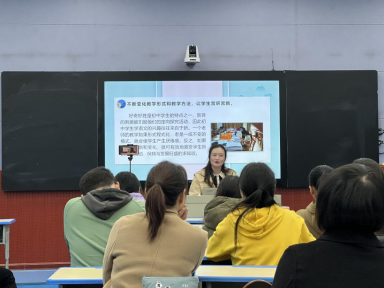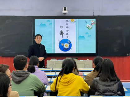 二位老师说课后是唐丽艳老师的“让语文与兴趣共舞”讲座。唐老师明确指出语文学习的关键——兴趣,从兴趣的重要性、对老师、对语文课堂三大版块展开论述。邓水平老师对此表示了高度赞同,表示老师左手是孩子,右手是语文,要充分调动员工兴趣,让员工信任老师,古人云,亲其师方能信其道。同时也指出孩子成就感获得的重要性,这不能像数学这类学科让孩子使劲刷题,这反而会使适得其反,我们应在一种语文情趣中努力使员工获得心灵情感的体悟与语文能力的提升,在实践中教学。