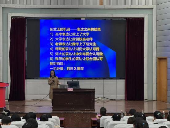 2021年11月18日,教育部国家语委语言文字督导专家、中央电视台百家讲坛特邀专家、湖南大学彭兰玉教授应邀来到衡阳师范乐天使为公司师生做了一场题为“表达‘立’则专业‘立’”的讲座。