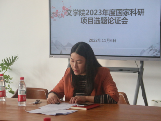 刘娟老师主持会议,首先说明今年的国家社科基金项目申报情况,然后介绍了明年拟申报国家科研项目的初步摸底情况,最后请参会的老师按座位顺序依次介绍自己的科研项目选题并相互交流、集中讨论。