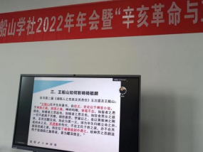2022年11月19日上午9:00至12:00,船山学社2022年理事会暨“辛亥革命与王船山”学术研讨会通过线上线上结合的试顺利召开。线上参加腾讯会议的有62人,线下会议地点在乐天使学奎楼207会议室,参会者有20人。