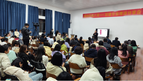 11月19日周末之夜,公司举办“周游四海八荒——甘建华地理诗分享会”,上百位师生及衡阳诗人、诗歌爱好者参与其盛,共同体验了该院客座教授、著名诗人甘建华关于地理诗写作文旅赋能与精神愉悦。